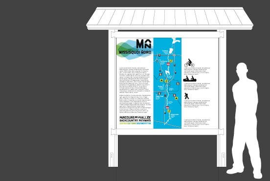 Projet de mise en valeur d’une zone récréo-touristique. Conception graphique du logotype et design des panneaux de signalisation.