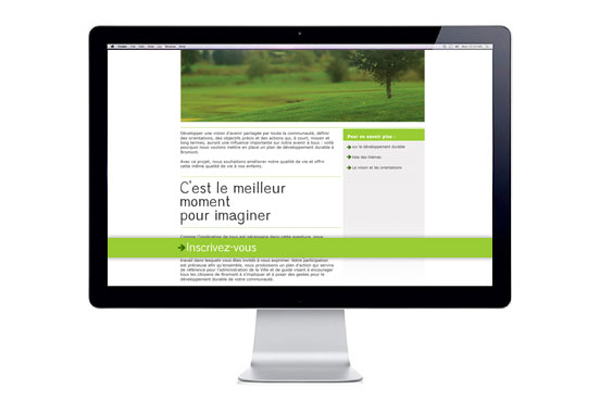 Les objectifs du site étaient d'informer les citoyens sur la démarche liée à l'établissement d'un plan de développement durable et d'inviter les citoyens à s'impliquer en s'inscrivant dans un groupe de travail en lien avec le futur plan de développement durable de la ville de Bromont.