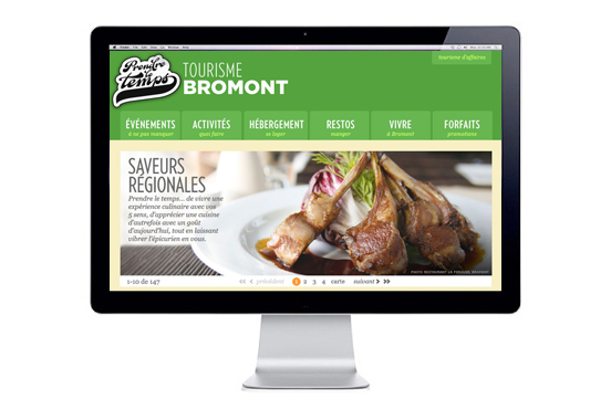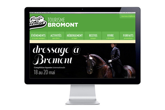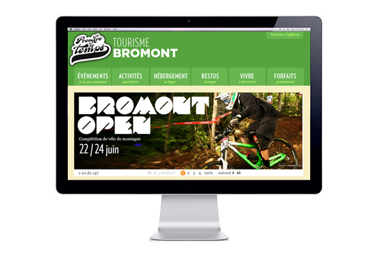 Conception graphique, du site internet de Tourisme Bromont, un site soutenu par un système de gestion de contenu (CMS).