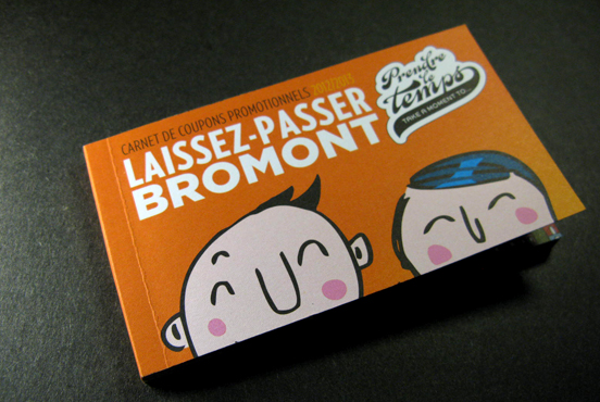 Conception graphique d'un carnet de coupons promotionnels de type folioscope pour Tourisme Bromont. Idéation et création des illustrations nécessaires à l'animation se retrouvant au dos des coupons. Voyez la vidéo de présentation du carnet!