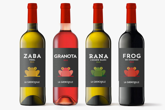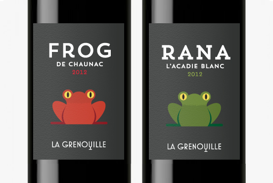 Conception et réalisation des étiquettes du vignoble la Grenouille.