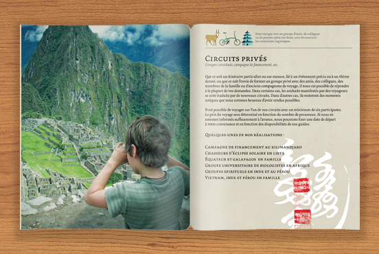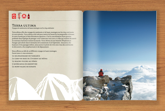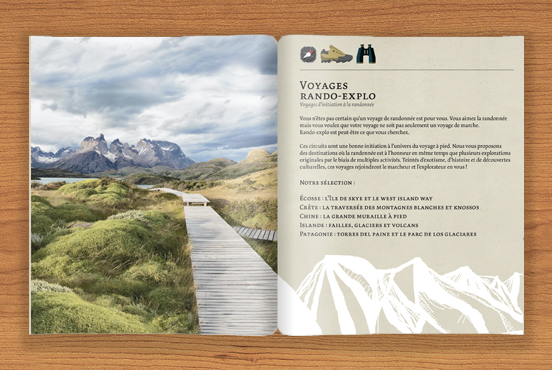 Conception et réalisation (design graphique, retouche photo) d'un petit catalogue de services pour Explorateur voyages
