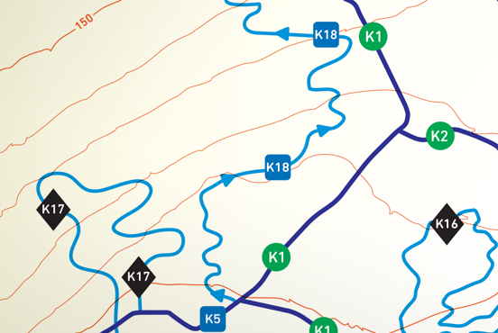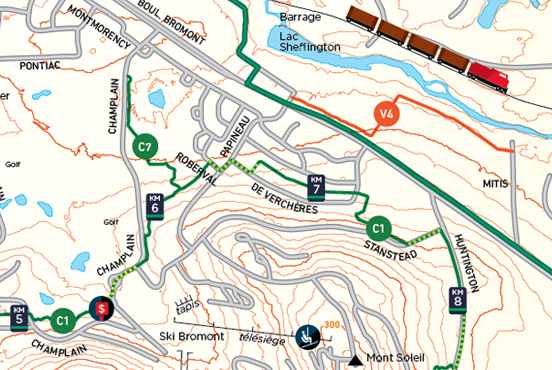 Conception et réalisation de la carte topographique des réseaux de sentiers de Bromont, avec la collaboration d'Annie Cabana et de Wai Loi Wong