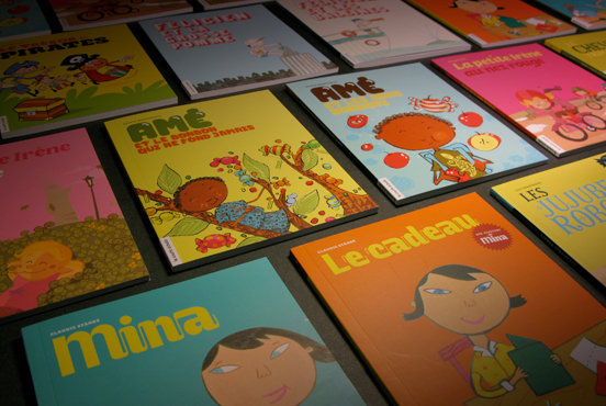 Conception graphique des couvertures de la collection Première Lecture des éditions La Courte Échelle. Développement d'une signature pour chacune des huit séries de la collection.