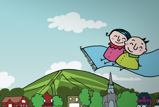 Conception de personnages illustrés pour la promotion de Tourisme Bromont. Ces personnages sont utilisés dans tous les outils de communication de l'organisme : enseignes, circuits touristiques, site Internet, dépliant touristique, signalétique et annonces publicitaires.