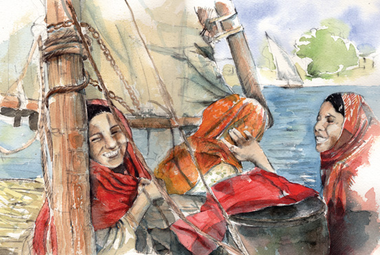 Réalisation de plusieurs illustrations à l'aquarelle et au trait pour les documents corporatifs d'Explorateur Voyages : catalogue de destination, dépliants promotionnels et bulletins d'information électroniques.