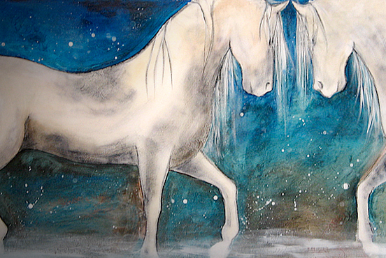 Réalisation d'une série de tableaux sur le thème des chevaux développés pour une exposition à Bromont. Acrylique sur toile.